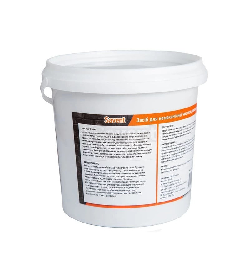 Уникальное средство для немеханической очистки дымоходов и твердотопливных приборов – Savent! Этот порошок нового поколения обладает каталитическим действием, способствующим разрыхлению сажи и смолы, превращая их в пепел, после чего они безопасно оседеют.