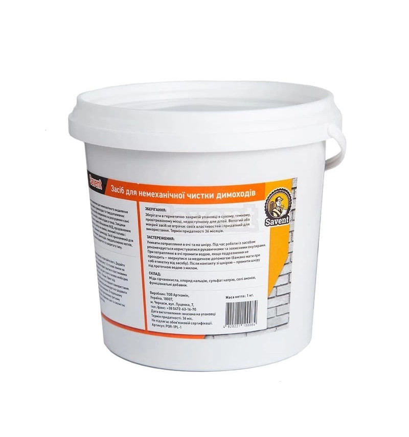 Универсальное применение: Savent 1 кг подходит для кирпичных и металлических дымоходов, твердотопливных котлов, печей, печей-каминов и каминов открытого и закрытого типа.