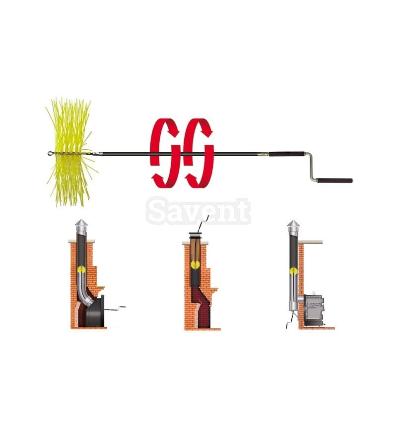 Ручку-круговорот для чистки дымохода Savent - инновационный инструмент, разработанный для эффективной и быстрой очистки дымоходов от сажи, смол и других продуктов сгорания топлива. Эта уникальная ручка обеспечивает круговые движения, которые передаются на щетку, значительно повышая эффективность процесса чистки.