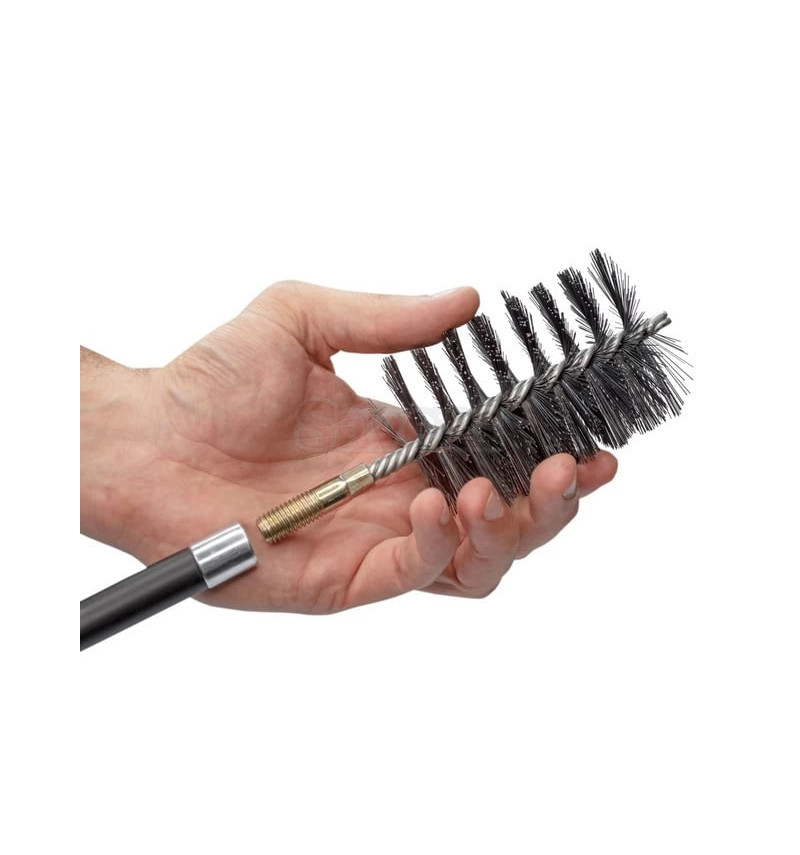 Щетка для чистки теплообменника Savent - это надежное средство для борьбы с отложениями на стенках камеры сгорания и теплообменника в твердотопливных котлах, каминах и печах. Ворс щетки изготовлен из оксидированной пружинной проволоки диаметром 0,3 мм, которая зажата между четырьмя оцинкованными стержнями диаметром 2,8 мм.
