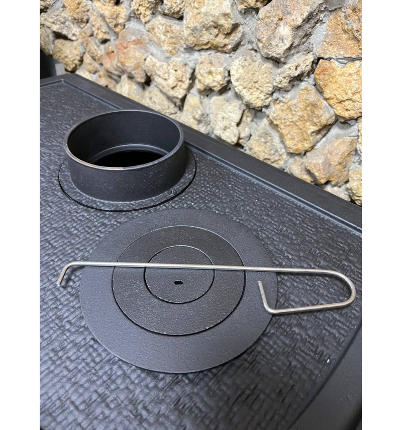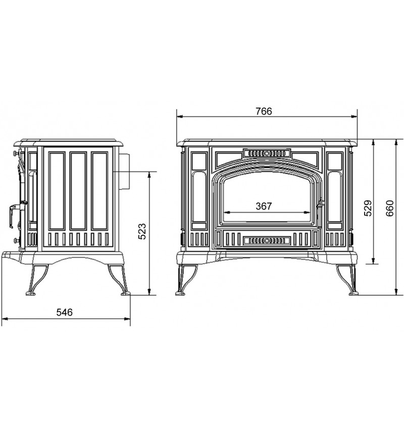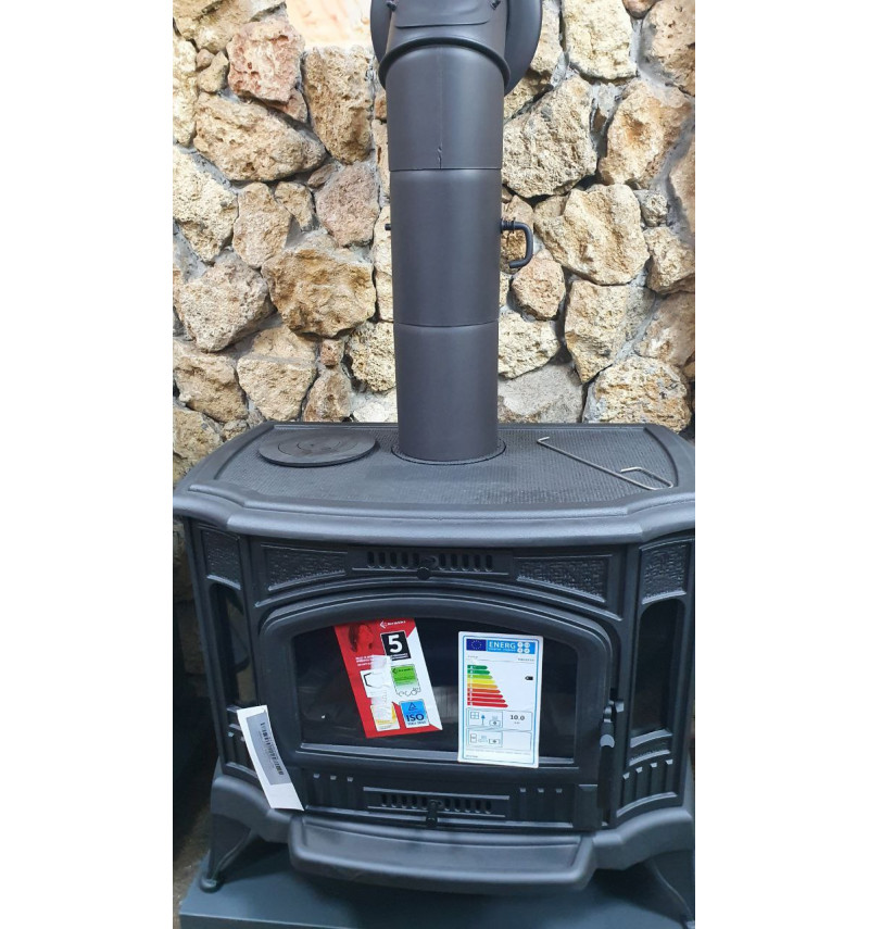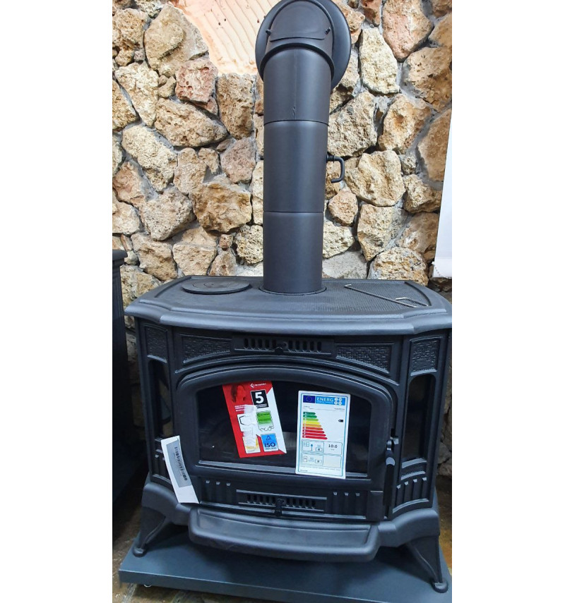 Диаметр дымоходного отверстия – 150 мм. На сайте можно приобрести подходящие трубы для обустройства дымоходной системы. Максимальная мощность равна 13 кВт, при КПД в 76%. Этого вполне достаточно для создания комфортной температуры во всём доме. Каминная печь Kratki Koza K9 150 выглядит эстетично, и легко вписывается в большинство дизайнов интерьера. Допускается использование практически любого твёрдого топлива: дров, паллетов и т.д. Максимально допустимая длина поленьев для топки – 350 мм.